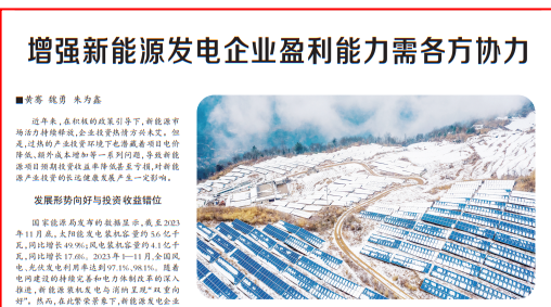 《中國能源報》:增強新能源發電企業盈利能力需各方協力