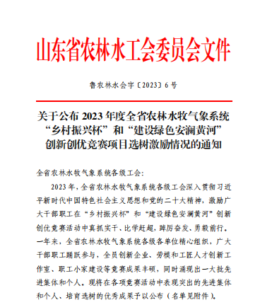 水發能源喜獲2023年度全省農林水牧氣象系統工會創新創優競賽項目選樹激勵四項榮譽