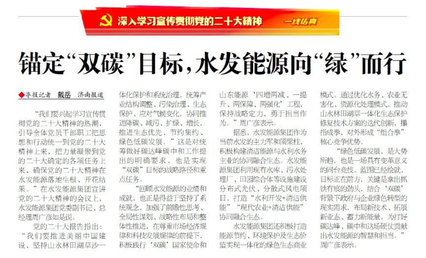 《經濟導報》報道水發能源黨的二十大精神學習:錨定“雙碳”目標 水發能源向“綠”而行